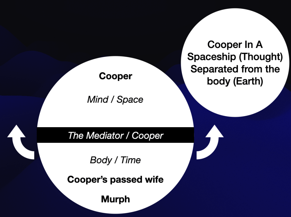 This difficulty in seeing the Earth clearly means Cooper struggles to connect with his own body, which is his anima, as the body is a feminine production originating from a mother. If a man cannot connect his mind to his body, he is caught between the needs of the body and the mind. The mediator between these needs is spiritual longing. Connecting with one’s inner woman is a gateway to understanding time and its significance in being bound to a body.