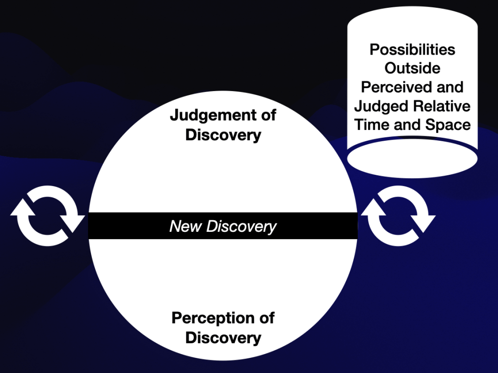 Figure 4. New discoveries and perception. The cylinder behind represents the vessel that is separated from space and time and therefore hard to believe in the confines of consciousness of time and space. Although the depths of the psyche reach beyond space and time (see synchronicity).